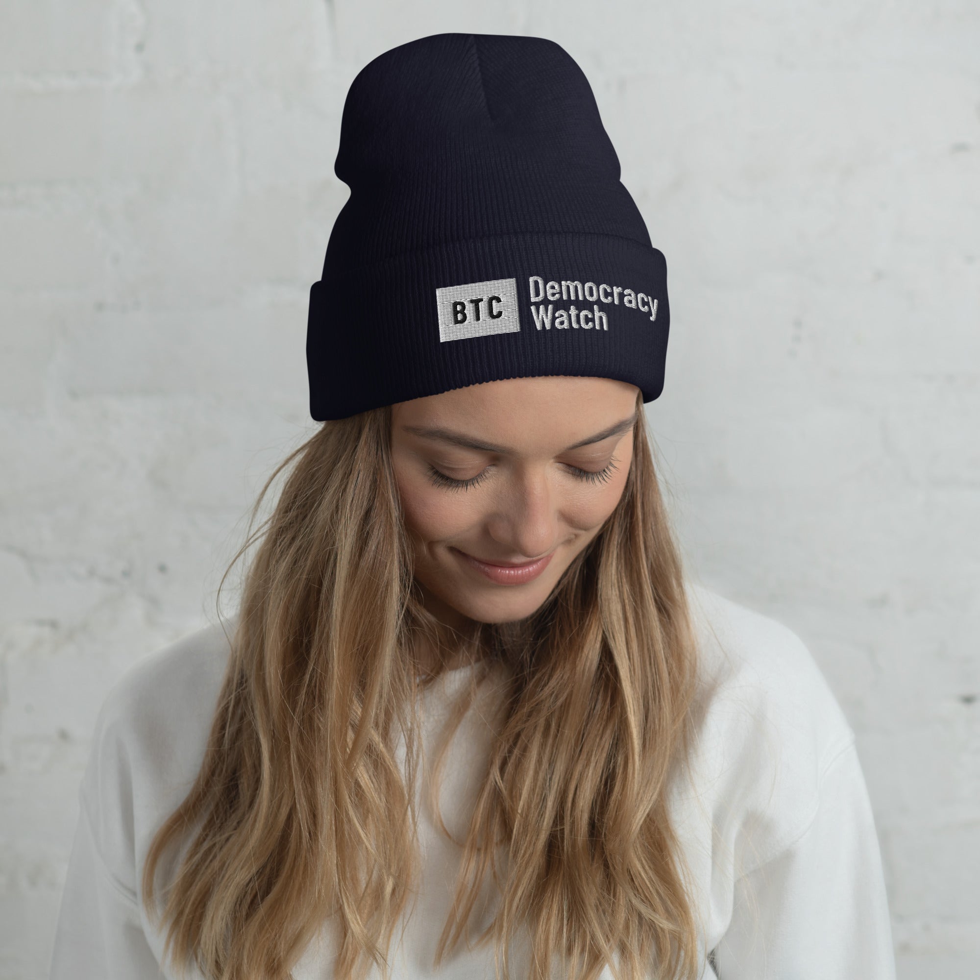 "Democracy Watch" Cuffed Beanie - Navy/Black